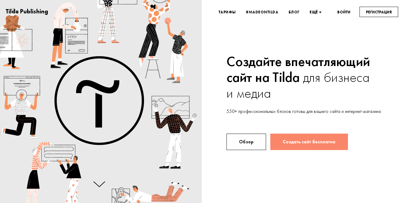 Простой блочный конструктор сайтов Tilda.cc позиционируется, как один из самых легких способов обзавестись собственной интернет страницей. Да, при помощи данного конструктора вам вряд ли удастся создать полноценный веб-портал или интернет магазин, поскольку его назначение – сайты визитки, медиа портфолио, лендинги и посадочные бизнес страницы.
