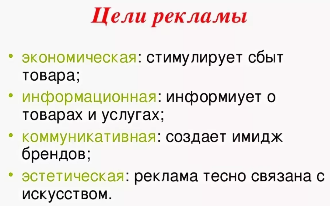 Определение цели рекламы