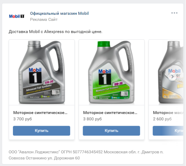 Одним из наиболее распространенных форматов рекламы в VK является карусель. Этот вариант подходит для продвижения товаров и услуг: в публикации можно показать несколько фото, указать цену и добавить кнопки для перехода на внешний сайт.