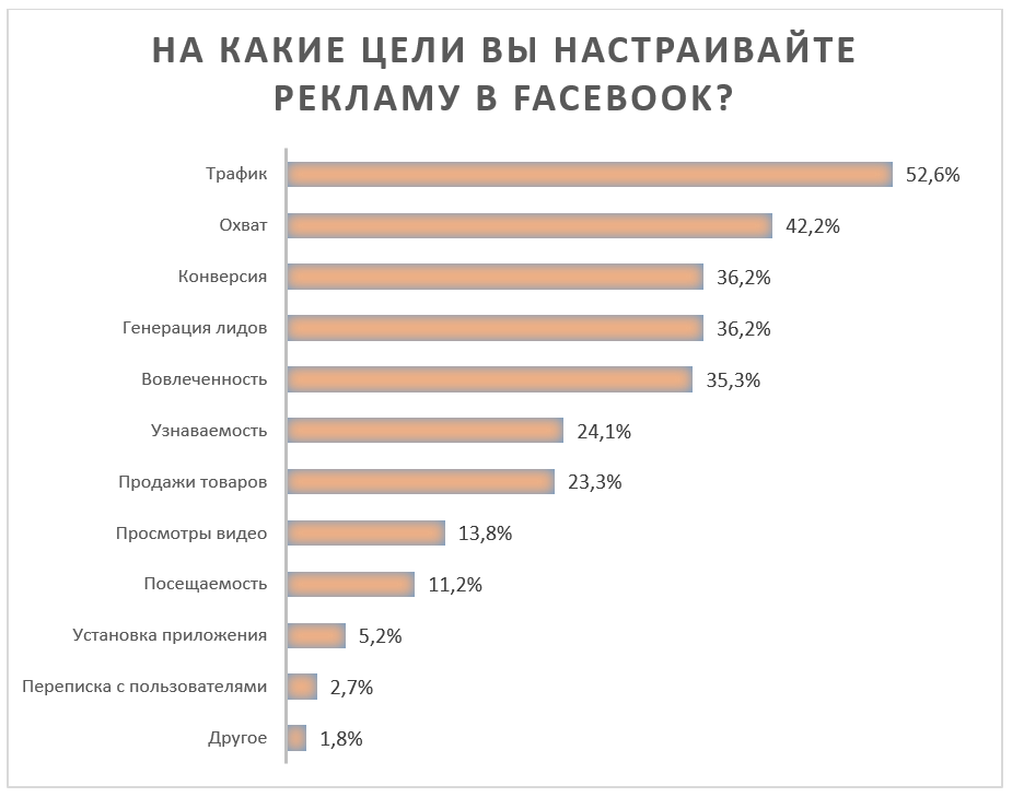 Цели рекламы в FaceBook по данным исследовательного центра "Лайкни"